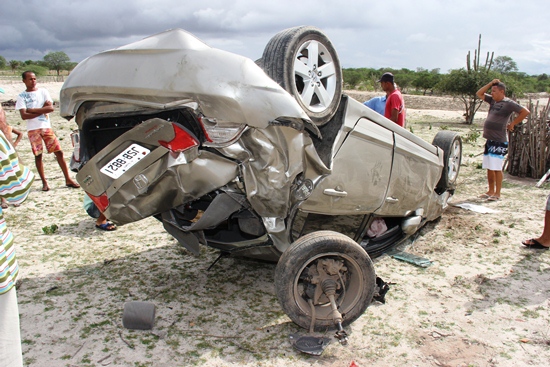 Coité – Carro sai da pista bate em muro e capota dentro de roça deixando três feridos