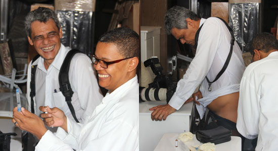 momento da aplicação da injeção e até brincou: o pior seria se a