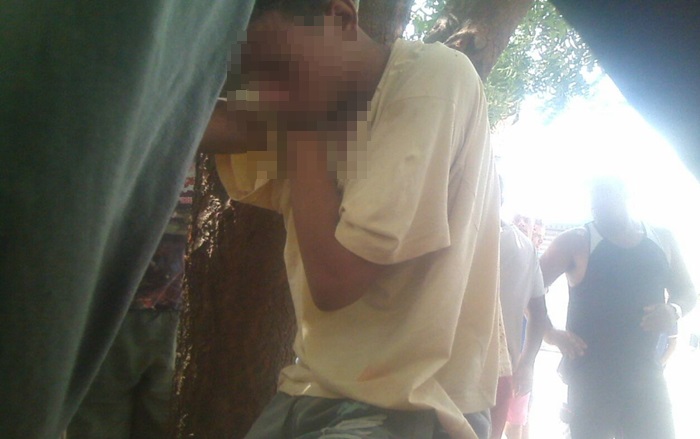 amarraram o mesmo numa árvore no centro do povoado e passaram a