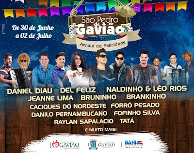 A festa contará com o ex-cantor da banda Calcinha Preta Daniel Diau, o forrozeiro Del Feliz e a dupla Naldinho e Leo Rios.