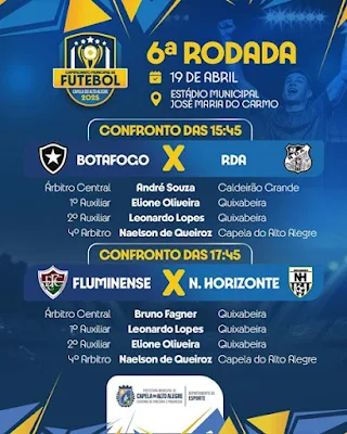 Neste Sábado 19 de Abril, acontecerá a 6ª Rodada do Campeonato Municipal de Capela